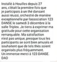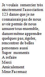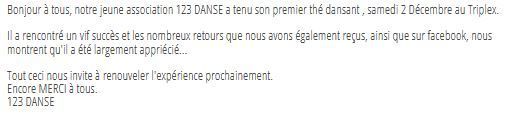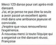 123 DANSE est une activité de danse de loisir. MERCI à vous.